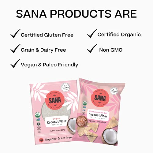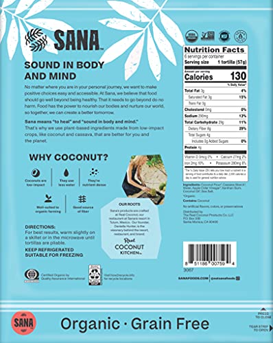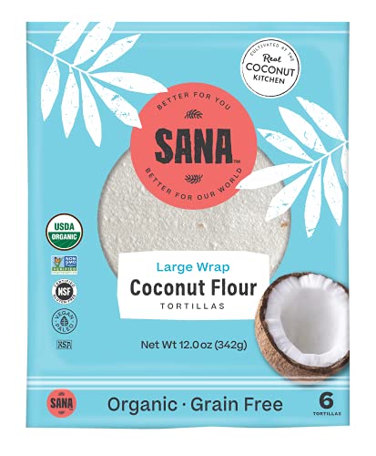 SANA Coconut Flour Original Organic Tortillas | Vegan & Paleo Friendly | Plant-Based & Gluten Free | Large Wrap, Pack of 6