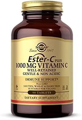 Non-GMO, Vegan, Kosher, Halal & Gluten Free; Solgar Ester-C Tablets with 1000 mg of Vitamin C are free of: gluten, wheat, dairy, soy, yeast, sugar, sodium, artificial flavor, sweetener, and color