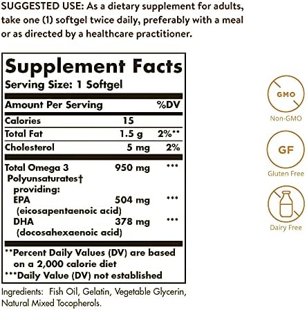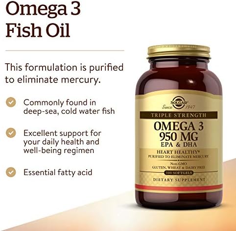 Tested For Optimum Purity; Sourced from deep-sea, cold water fish; Solgar Triple Strength Omega 3 950mg EPA and DHA Softgels are purified via molecular distillation to remove mercury and other environmental impurities
