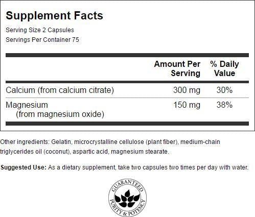 The better answer for strong, healthy bones! Calcium may get most of the attention, but nutritionists will tell you that it takes more than calcium to maintain strong bones; it takes a healthy ratio of calcium to magnesium. This special mineral formula features the ideal 2-to- 1 ratio of calcium to magnesium with 150 mg of calcium and 75 mg of magnesium per capsule.