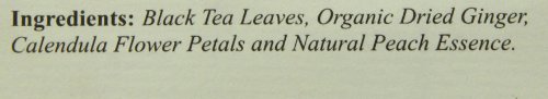 Ginger Peach is a blend of fine black tea, organic dried ginger, calendula (marigold) flower petals and natural peach essence.