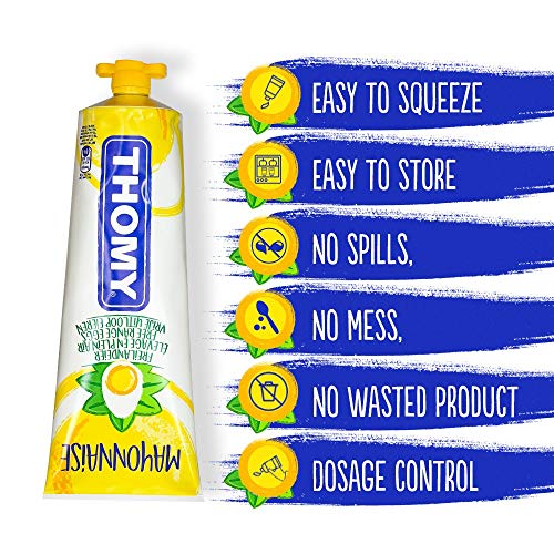 PACKAGED IN A HANDY SQUEEZABLE TUBE: Most mayonnaise comes bottled in those giant, clunky jars that take up a ton of space in your fridge. Not Thomy mayo. The spill-proof squeezable tubes ensure a mess-free experience and preserve the content fresh for longer. Plus, the tubes allow you to dial in the amount you’re using with ease.