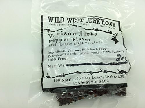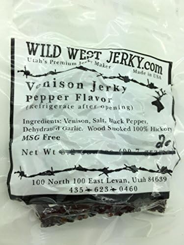 Premium Venison Jerky By Wild West JerkyFind your favorite jerky flavor in the great variety of Wild West Jerky. Real venison meat, expertly handled, stripped and smoked for your enjoyment.Our venison jerky comes in a size packages of 2 ounces.Delicious Flavors to Choose FromWild West Jerky offer you venison jerky in different flavors.With these choices, you will never get bored of your favorite venison jerky.Quality Meat and ManufactureIf you are tired of bland market products that all taste the same, you must try what the Wild West Jerky offers. Our jerky comes from real deer, not tuff utility cows, and we dedicate in delivering a product of exceptional quality. To that end, our jerky is hand-stripped to average thickness, effectively flavored with dry-rub recipes and wood smoked with 100% hickory wood.Taste the venison jerky of Wild West Jerky and you won’t buy another brand ever again.Locally ProducedCertified by all relevant authorities and using only verifiable locally-raised meats, Wild West Jerky is proud to contribute to USA economy from its Utah-based provider headquarters. Support a local product instead of doubtful imported meats.Taste Our Delicious Venison (Deer) Jerky, Click Add To Cart Now!