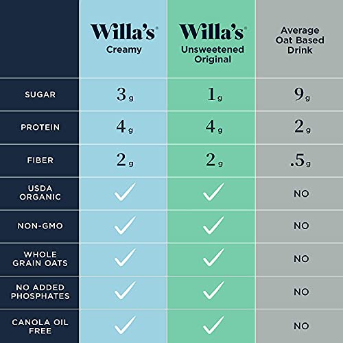 Made Using The Whole Grain Oat. Unlike other oat milks, Willa’s uses the entire whole grain oat in our unique milling process. This means we get more fiber and protein, and less sugar, in every delicious cup.