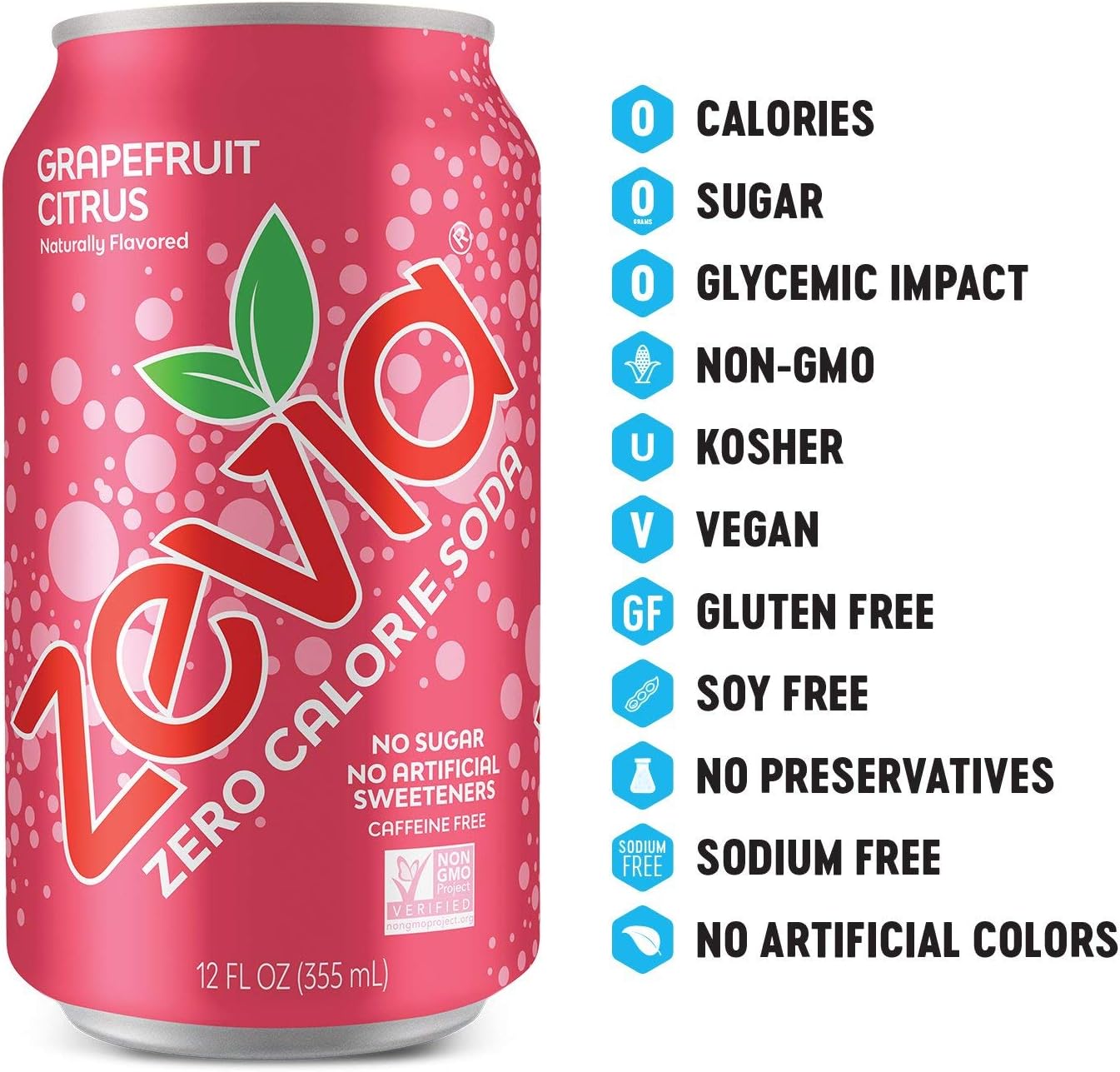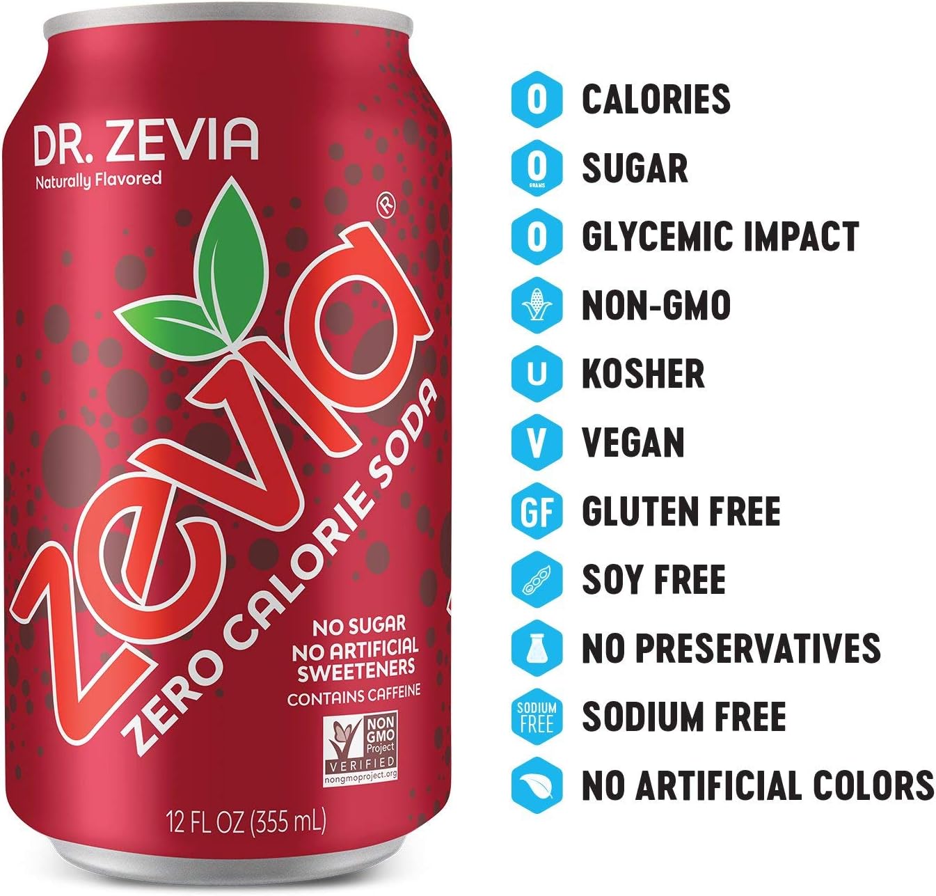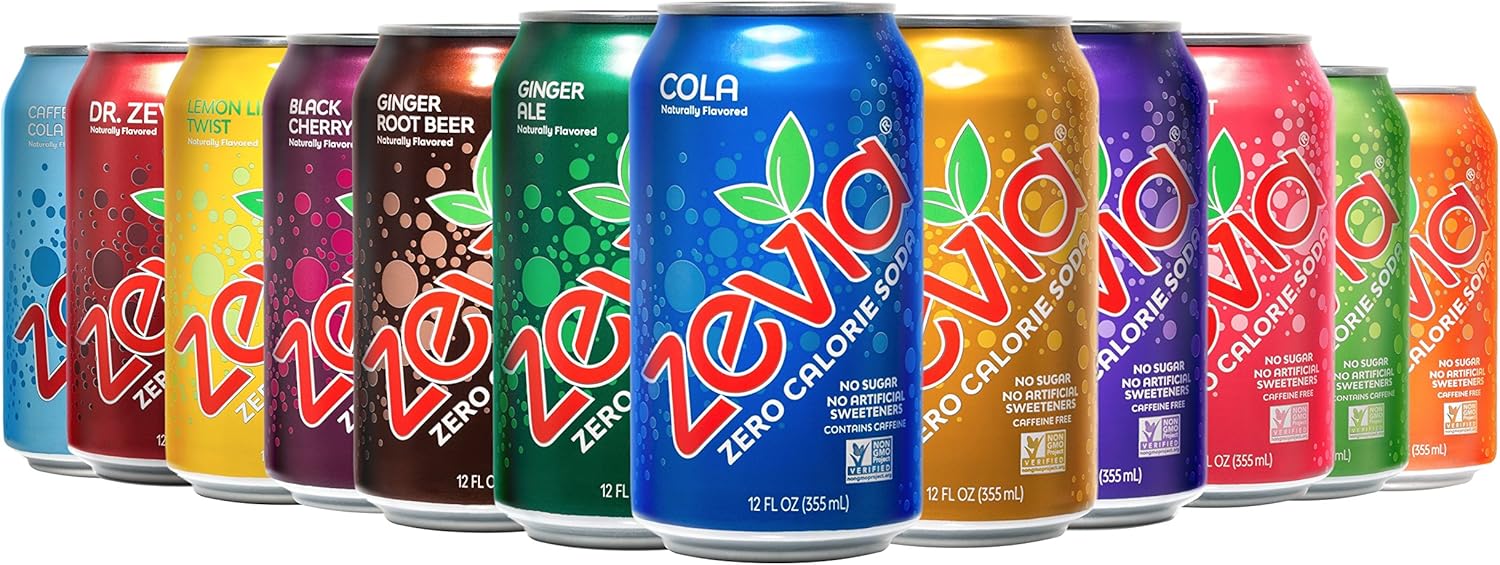 Zevia uses only simple, plant-based ingredients to make our beverages; zero artificial sweeteners, colors or ingredients; ships in Amazon Certified Frustration-Free Packaging