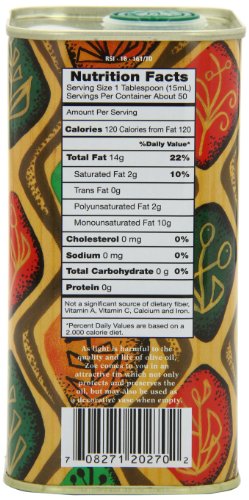 Zoe Organic Extra Virgin Olive Oil Tin, BPA Free Lining, 25.5 Ounce, Pack of 2